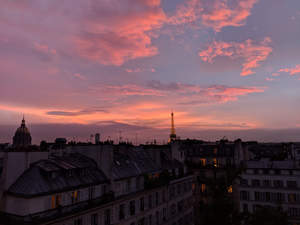 The plaza seven floors down. The peaks and pigeons of a gothic cathedral. The Eiffel Tower, arcing art against the rooftops - backed nightly by a pink setting sun.